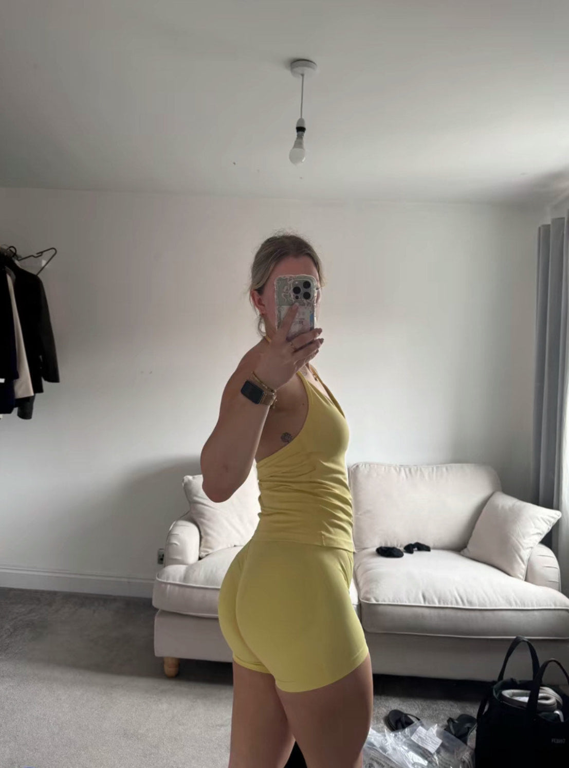 "Este conjunto me ha sorprendido muchísimo, queda espectacular puesto. Se adapta al cuerpo como una segunda piel, realza la figura y me hace sentir segura y favorecida en todo momento. Además, es cómodo y ligero, perfecto para entrenar con estilo y confianza."